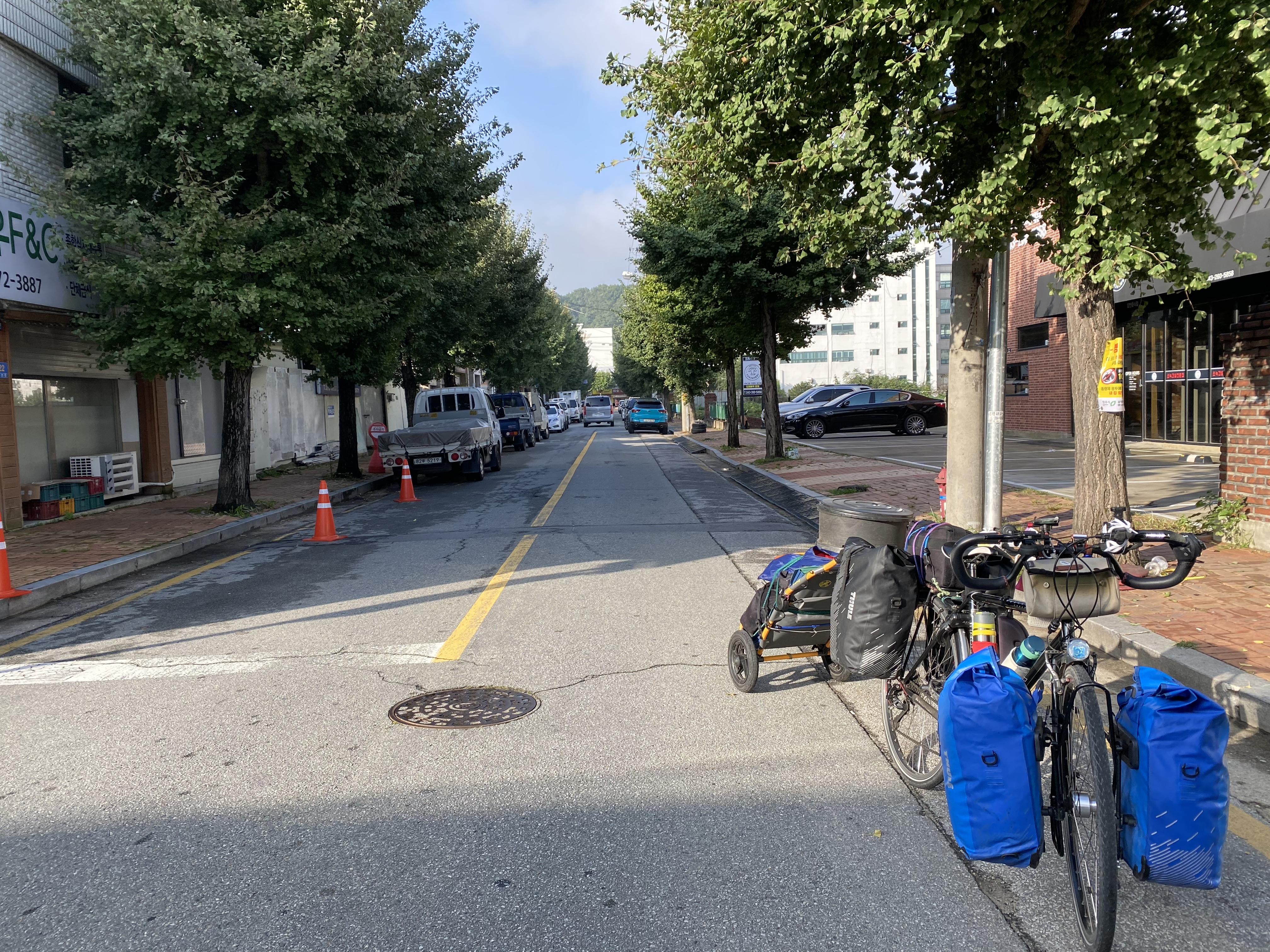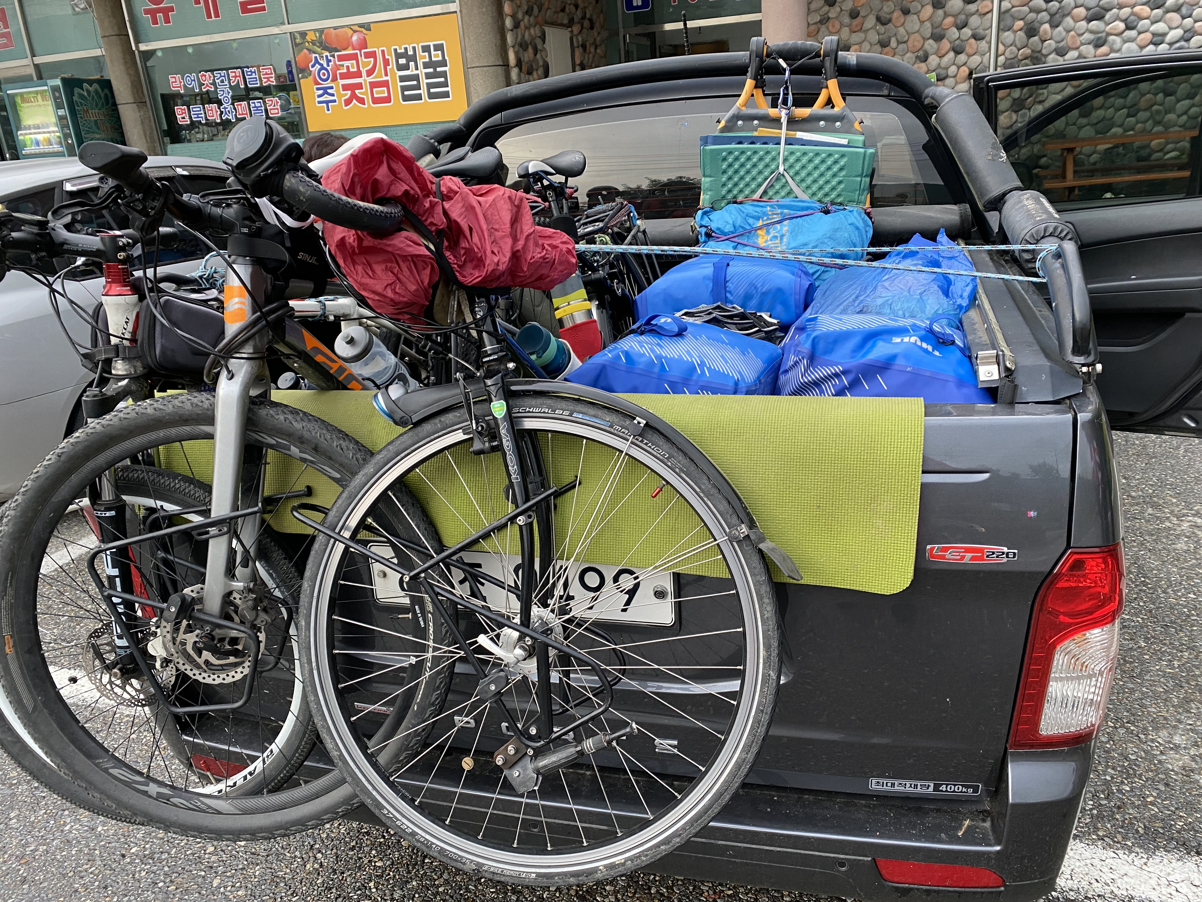* 진주부터 상주까지는 휴대폰의 자전거내비를 사용했다. 마을길, 농로, 비탈길 등 가깝지만 험한 길로 안내하는 걸로 보아 카카오자전거내비는 산악자전거를 위한 내비로 보인다. 트레일러와 짐가방을 달고 느리게 가는 장거리 자전거여행을 위한 제3의 경로도 있으면 좋겠다.