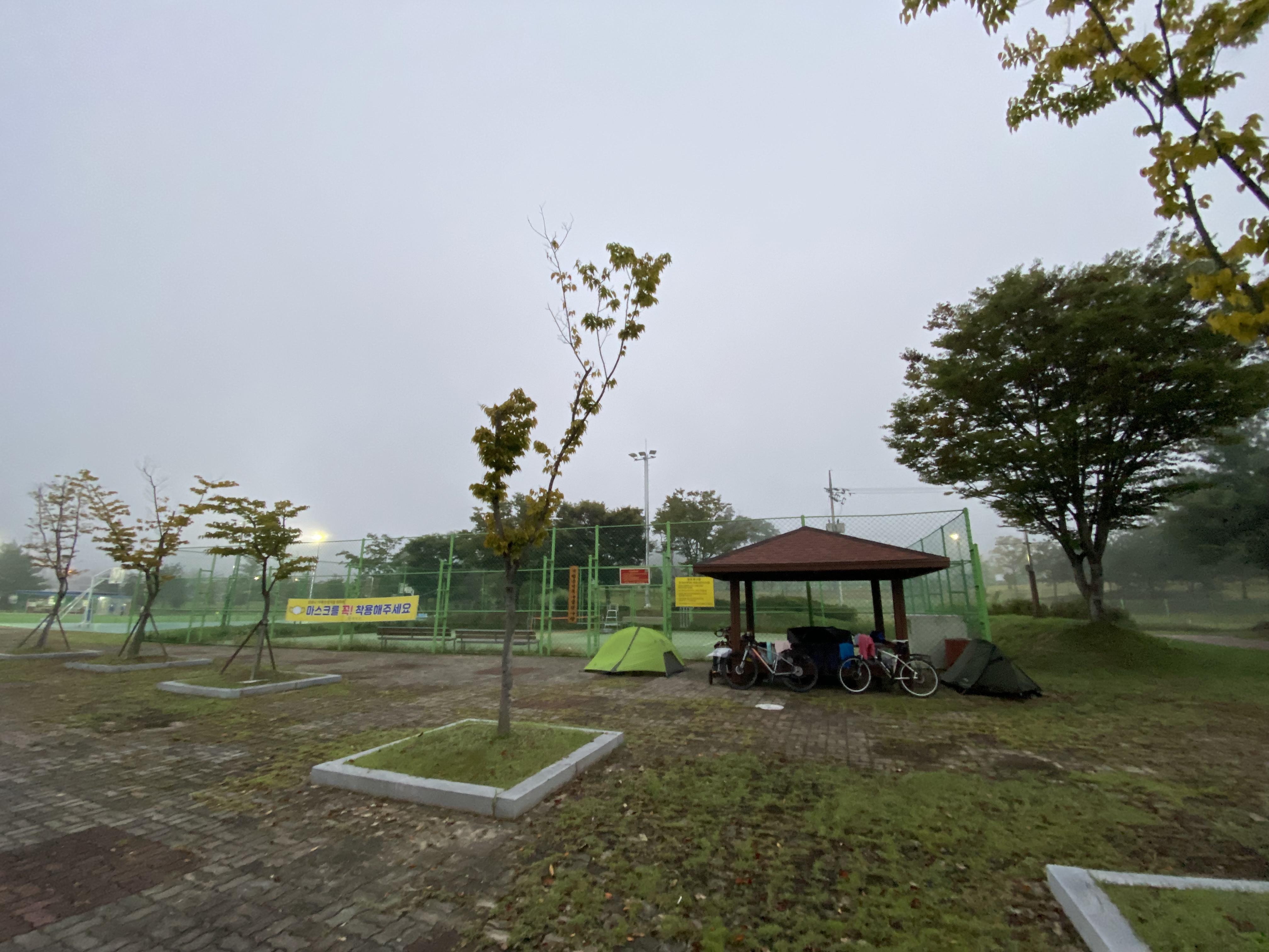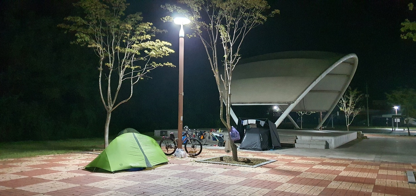 # 野宿地 : 1완주 운주면체육공원 2옥정호 물문화관 운암교 머리 3곡성 주민체육공원 4광양 진월 선소리공원 5진주천변 6남지 고곡면 남곡주민자치센터 7구미 동락공원 끝 공원과 하상도로 사이