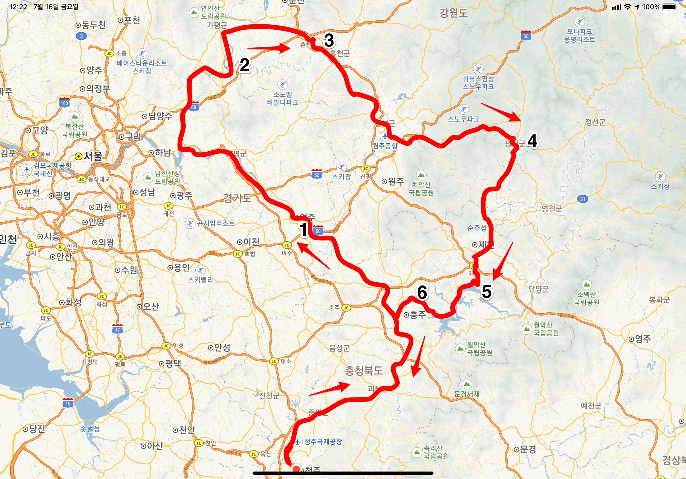 청주-충주-여주-북한강-춘천-홍천-횡성-안흥-평창-영월-제천 금성-충주호반길-충주 동량-청주