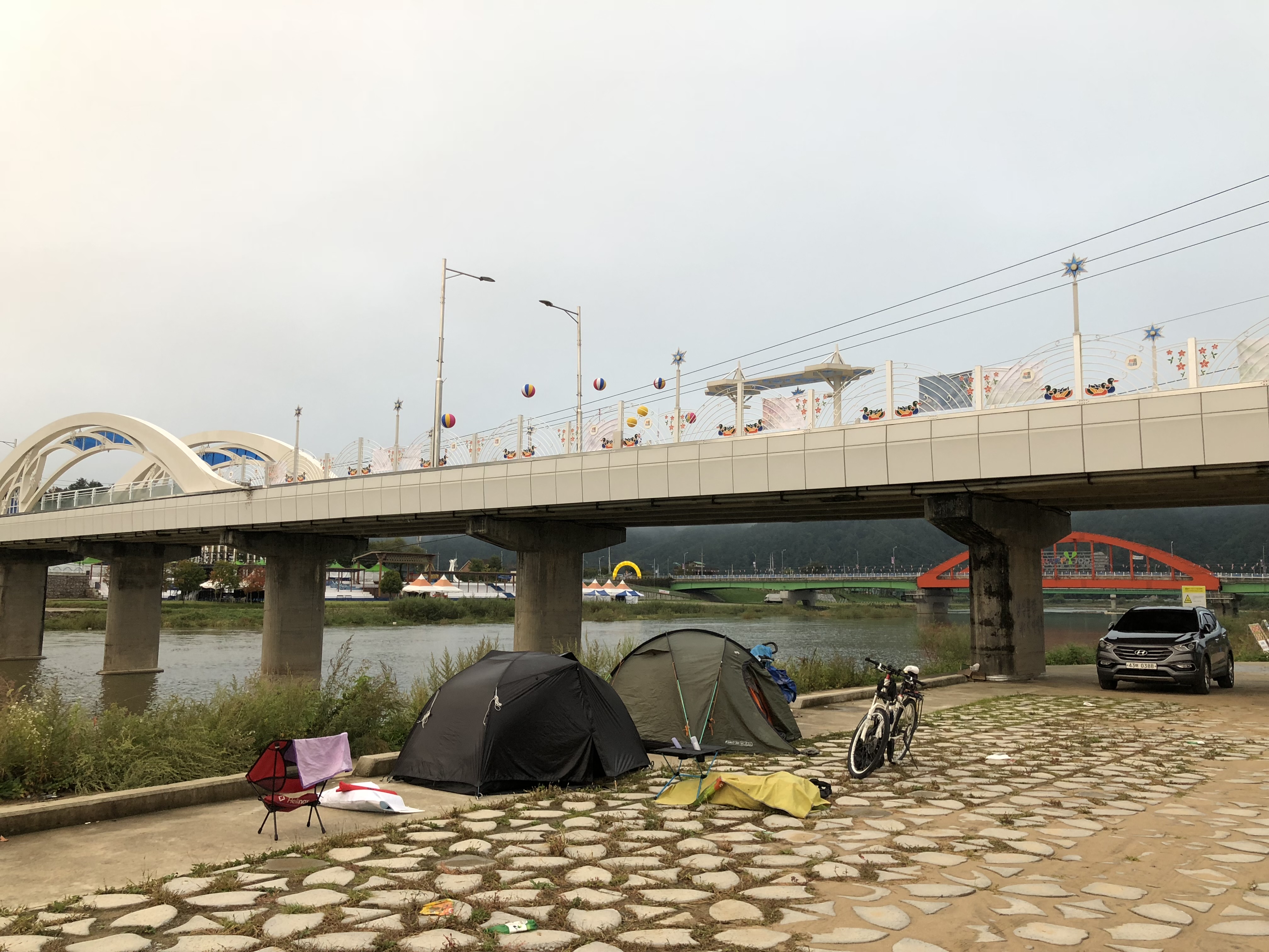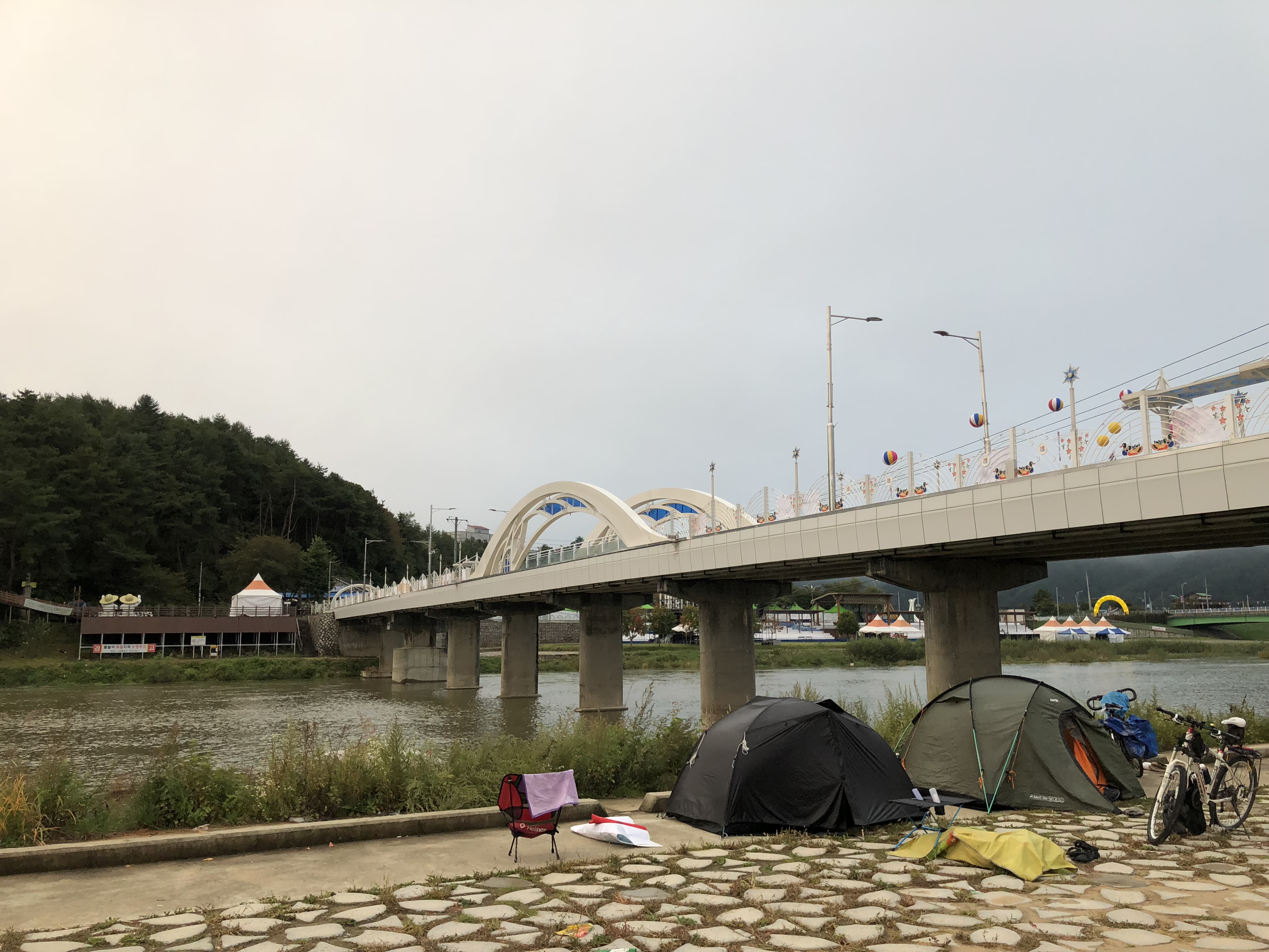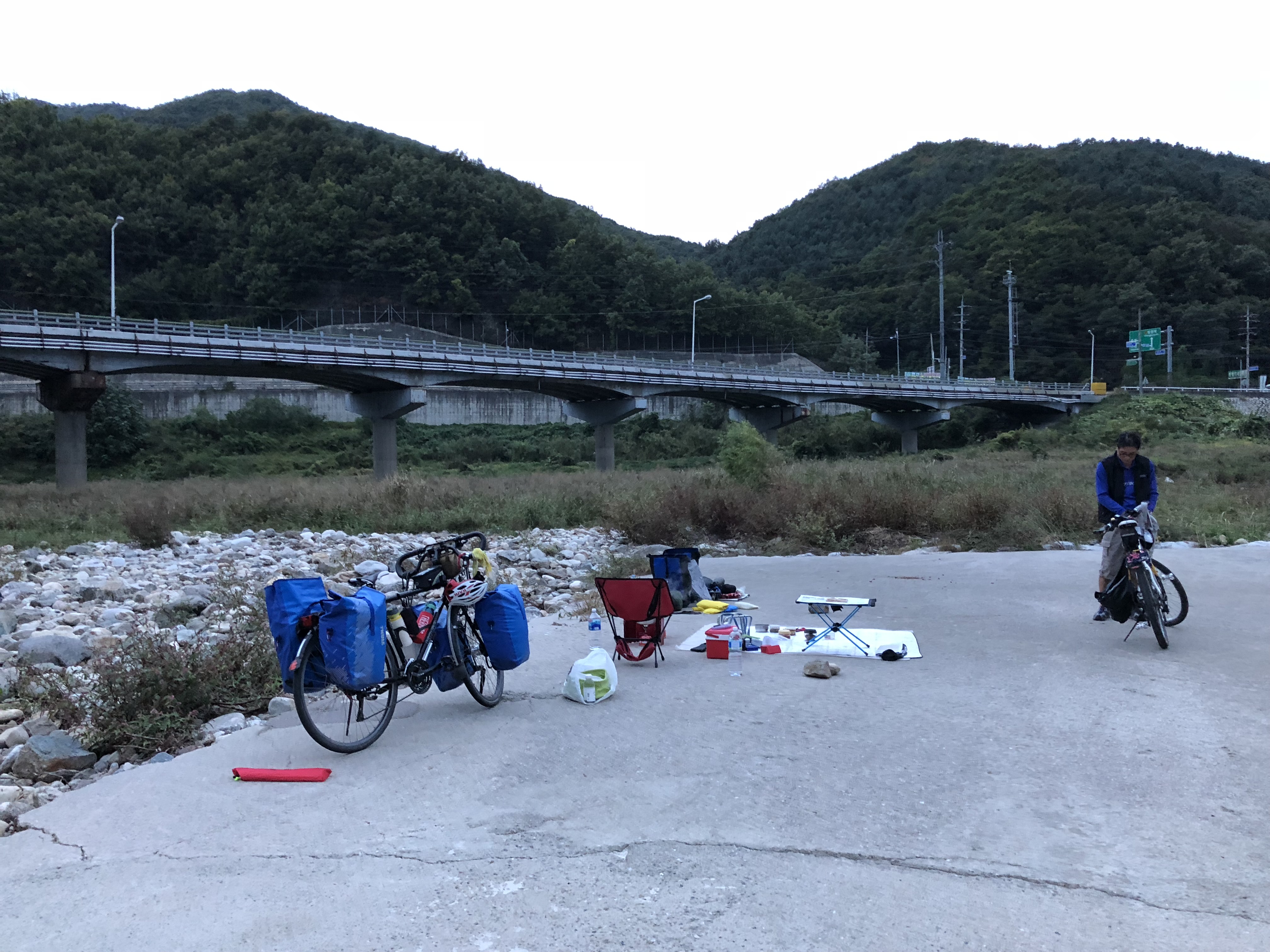 # 野宿地 : 1강천섬 2청평 3춘천 4평창 5 제천 금성 6 충주 동량